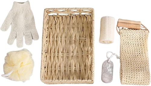 6-Piece Wooden Bath Set with Exfoliating Gloves & Foot Stone