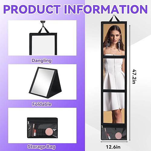 Foldable Full Length Trifold Mirror 47x13in with Storage Bag