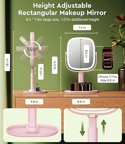 Rechargeable LED Makeup Mirror with 1X/10X Magnification & Phone Stand