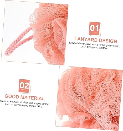 Wear-resistant bathing ball:shower body cleaning ball, cleans your skin well and thoroughly, beautiful bathing ball with lanyard for easy use and storage,compact bath sponge