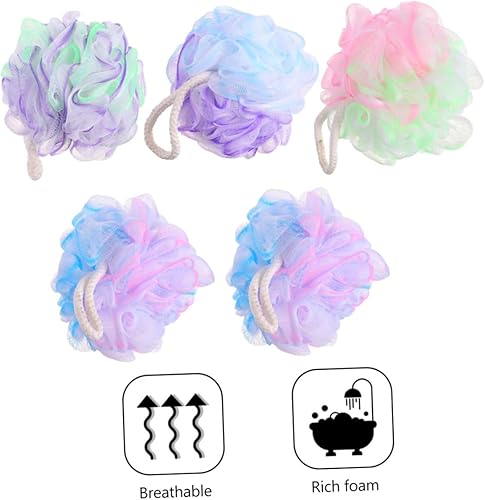 5-Pack Bath Sponges & Shower Poufs for Smooth Skin