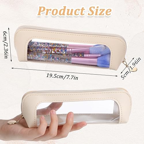 【Compact Portability】At 19.5x5x6cm/7.7x2.4 inches, the small clear makeup brush bag fits into handbags, briefcases, or airplane seat pockets. It adds negligible bulk while expanding slightly to accommodate irregularly shaped items like compacts or earbud cases.