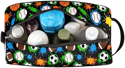 Kids Toiletry Bag with Dog Paws Pattern - Waterproof Travel Organizer(Colorful Splashes Sports Balls Pattern)