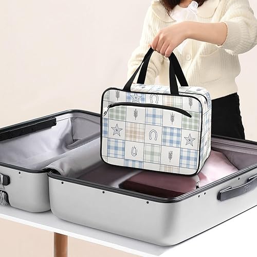 Women's Plaid Toiletry Bag with Hook - Travel Makeup Organizer(Western Farmhouse Plaid,12.6" x 9" x 5.7")