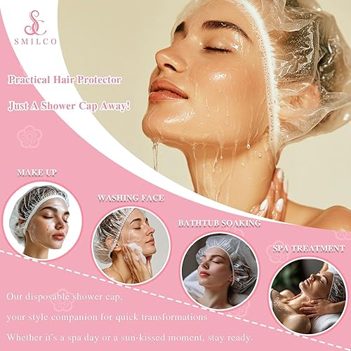 【WATERPROOF & CLEAN】Smilco shower caps are must - have shower accessories for women. These disposable shower caps offer a lightweight, water-resistant design to keep hair dry during showers. And bring you great convenience for your daily life.