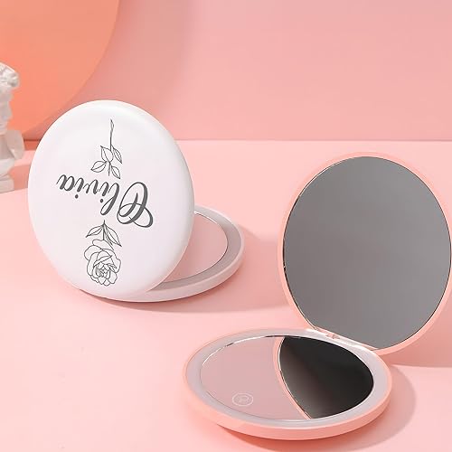 LED Compact Mirror with Light - Personalized Pink Makeup Mirror(Led-pink)