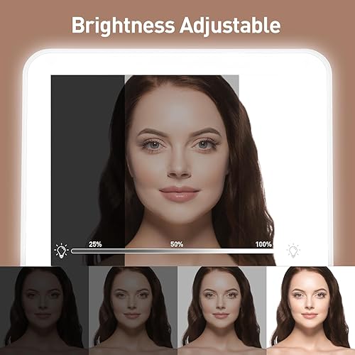 Adjustable Brightness Touch Screen: This vanity mirror is designed with high sensitivity touch buttons. Short press for on/off, long press for brightness adjustment, brightness varies between 100%, 80%, 50%, 20%,10%you can switch at will (you don't need to worry about forgetting to turn off the LED, because it will turn off automatically after 15 minutes).