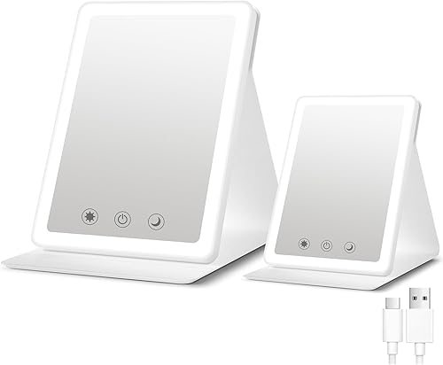 Travelling Cosmetic Mirror with Lights: The size of the foldable rechargeable makeup mirror with light is 5.32*5.2 inches, which is only the size of an ultra-thin Ipad mini. The ultra-thin, lightweight and compact design makes it your new travel companion!Make sure every part of your makeup is flawless, the foldable Vanity Mirror allows you to easily find your favorite vanity angle.