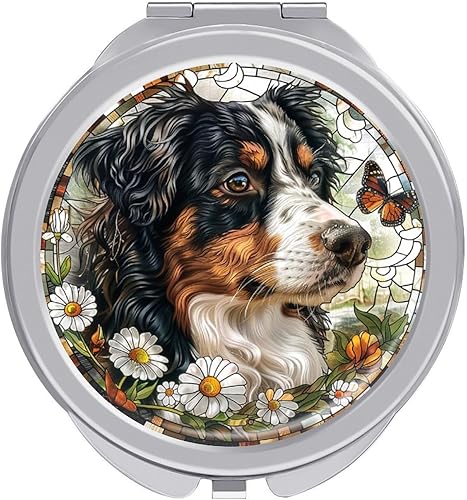 Stained Glass Compact Mirror for Women | Floral Dog Design