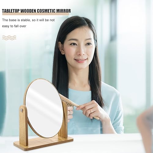 Tabletop mirror--swivel design makeup mirror, with wood stand, convenient to use, suitable for home tabletop or countertop,tabletop wood mirror