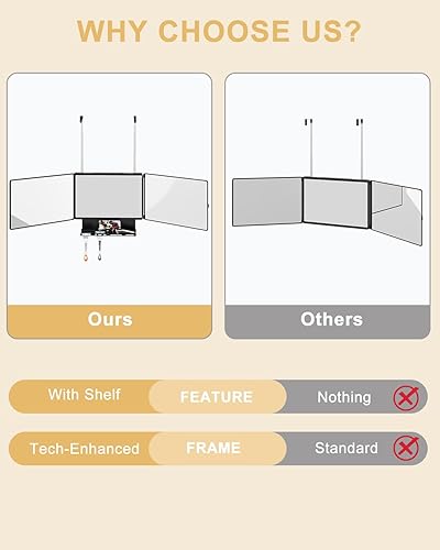 【360° Rotation & Trifold Design】 The three-panel design allows you to see the front, back, and sides of your head simultaneously, while the 360° rotation ensures you can adjust the mirror to any angle