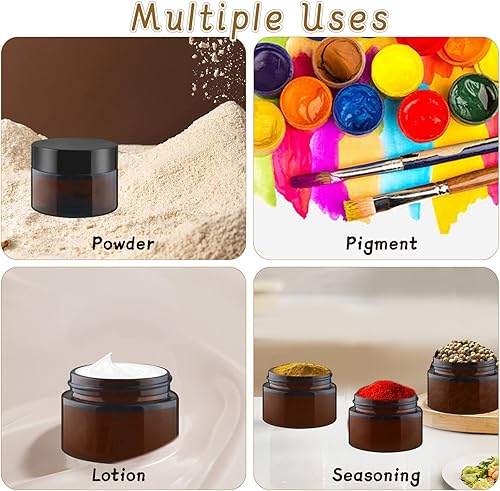 【Premium Quality】These glass cosmetic jars with lids are made of high quality amber glass material, durable and sturdy, not easy to broke and can be washed and used for many times. Not easy to be scratched.