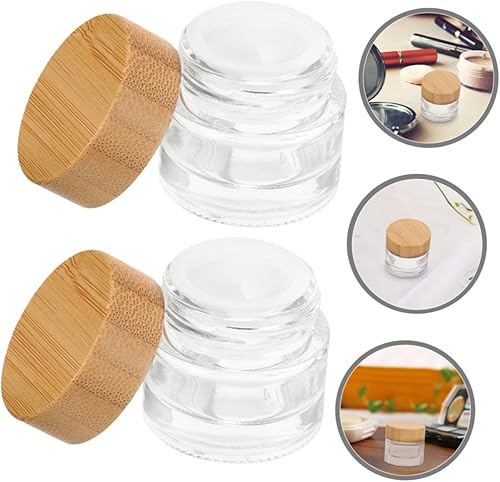 Reliable materials: made with a wood lid and transparent glass body, these refillable cosmetic containers are friendly and safe for your health,empty cream bottle,empty cream jar