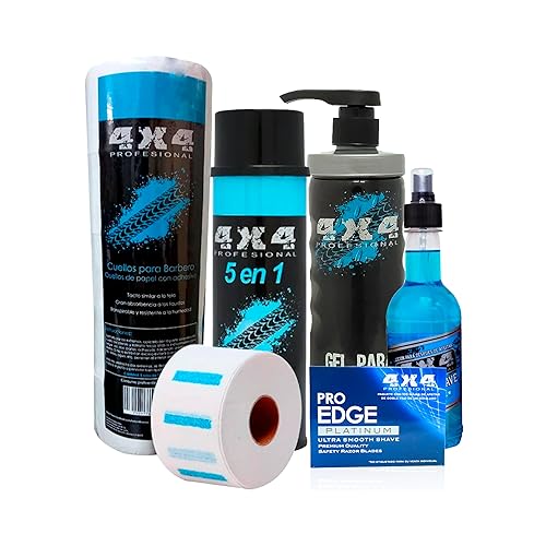 COMBO CONTENT: - White neck paper with 5 rolls. - Mint Shaving Gel 485ml - After Shave King Blue 300ml - Razor blades (10 packs of 10 units each) - 5 in 1 machine cooler 400 ml.