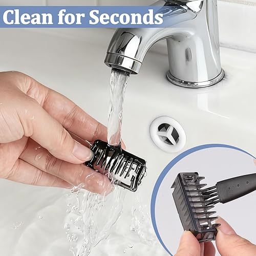 Precision & Multifunctional: Customize your look with 1/2/3/5 mm bi-directional combs for precise trimming. The multi-functional trimmer combs glide effortlessly over skin, adjusting to curves for a smoother, more comfortable shave. The click-on design allows for quick, tool-free installation and removal