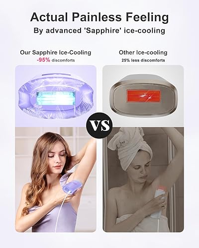 【Sapphire Ice Cooling Technology】The innovative technique sapphire ice-cooling is used for cooling the skin to 10°C upon contact. This innovation is capable of numbing the sensation of heat, making the treatment exceptionally comfortable and pain-free, even on your most sensitive areas like the upper lip and bikini line. Say goodbye to the pain of waxing and razors.