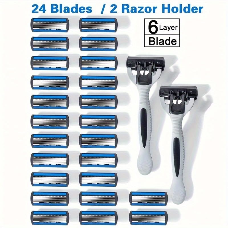 6-Blade Razor with Trimmer, 24 Cartridges & 2 Handles