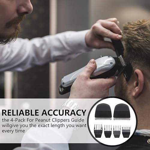 4 Sizes of Clipper Guide Comb: ( 1/8",1/4", 3/8", 1/2" ) 4 Pack clipper guides give you the accurate length that you want each time. The width of the peanut blade is a 1.27inch