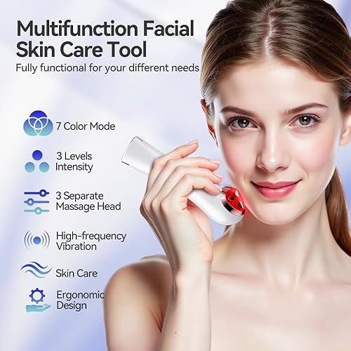 7-in-1 GLOW DEVICE: Our multi-functional facial massager has different 7 color mode and 3 levels intensity. Relax your skin, boosting skin care absorption, meet your various needs, so you can enjoy skin care at home