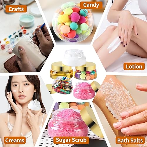 [Widely Used]:This cosmetic bottle with lid is very versatile, excellent storage jars for creams, emulsions, body scrubs, body butter, and other personal care, and is also suitable for storing items such as dry food, nuts, spices, flour, cute candy, or other handcrafted items.It is not recommended to install higher temperature objects.