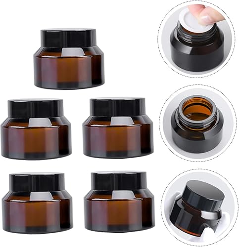 5Pcs Brown Glass Cream Jars - Leakproof TSA Approved Containers