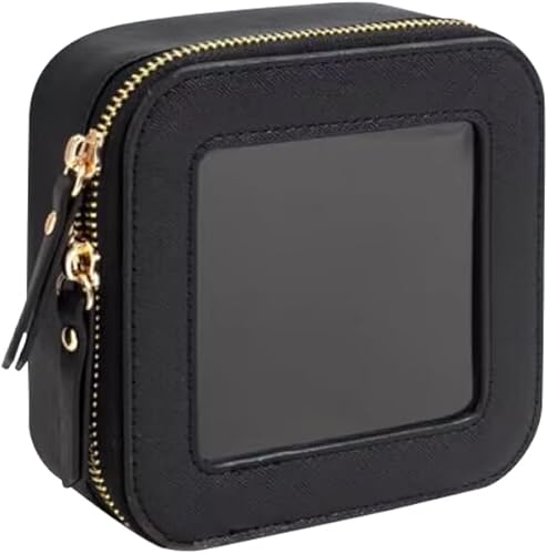 Square makeup organizer bag is made of PU leather, soft to touch, with smooth metal double zippers and clear PVC front window, simple and elegant, sturdy, can be used for a long time