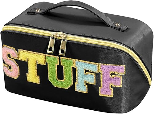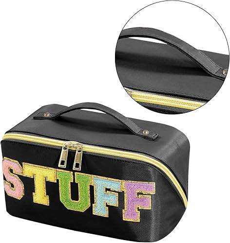Embroidered Letter Makeup Bag - Large Capacity Toiletry Organizer(black,One size)
