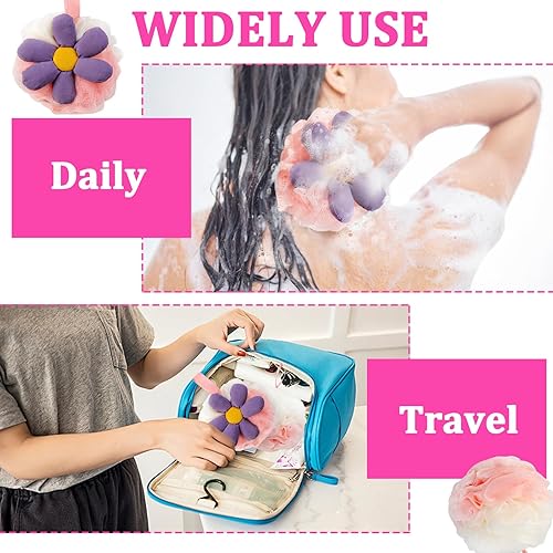 【Flower Shaped Loofah Sponge】Indulge in unparalleled comfort with our 2 pieces of bath sponge ball featuring a flower design. Its incredibly soft texture guarantees a luxurious and soothing bathing experience.