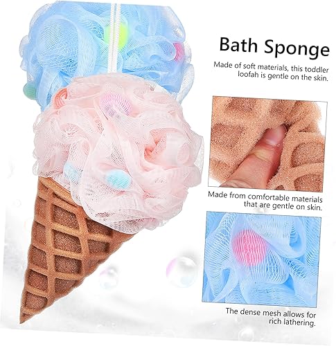 Shower loofah-- cute design: this bath sponge is designed to look like an ice cream cone, making it fun and attractive for children, encouraging them to take a bath,travel loofah.