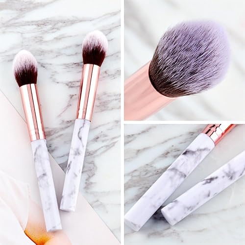 Marble Makeup Brush Set - 3pcs Blush, Highlighter & Powder