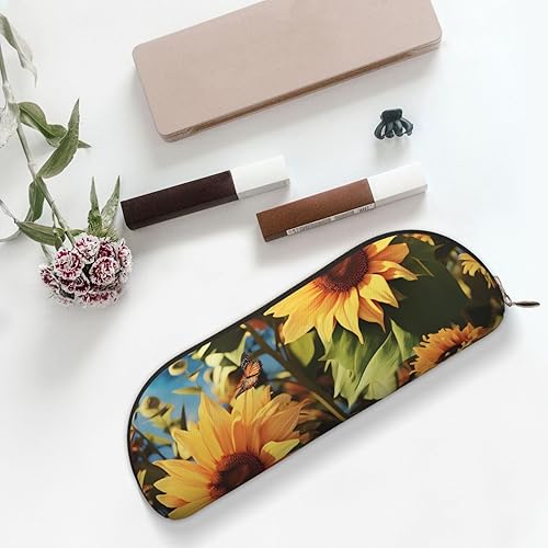 Sunflower Butterfly Leather Pencil Case & Toiletry Bag(Gold,One Size)