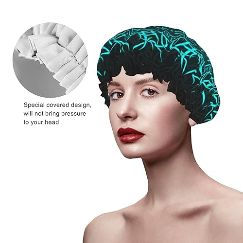 Quality Material: The shower cap uses a double-layer design contains a splash proof polyester outer layer and a PEVA inner layer that is soft, waterproof, durable and reusable. No more worry about getting your hair wet while taking shower!